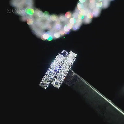 Illuminate every moment with The Chamak by MOISS & ICE Canada - our Round Brilliant Cut Moissanite huggie design earrings, designed for those who believe in endless sparkle. Each hoop is handset with VVS clarity, D-color moissanite gemstones, creating a seamless circle of brilliance that catches the light from every angle.