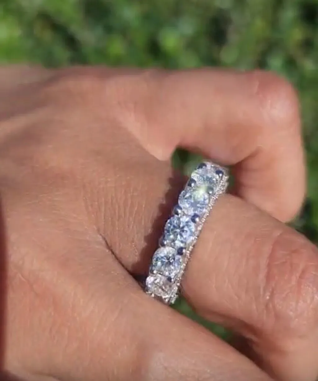 We set each our moissanite rings with VVS clarity moissanite stones, delivering breathtaking brilliance from every angle. Some rings have up to 5 carats of flawless sparkle (depending on size), this ring radiates luxury that rivals diamonds - without the luxury price tag.
