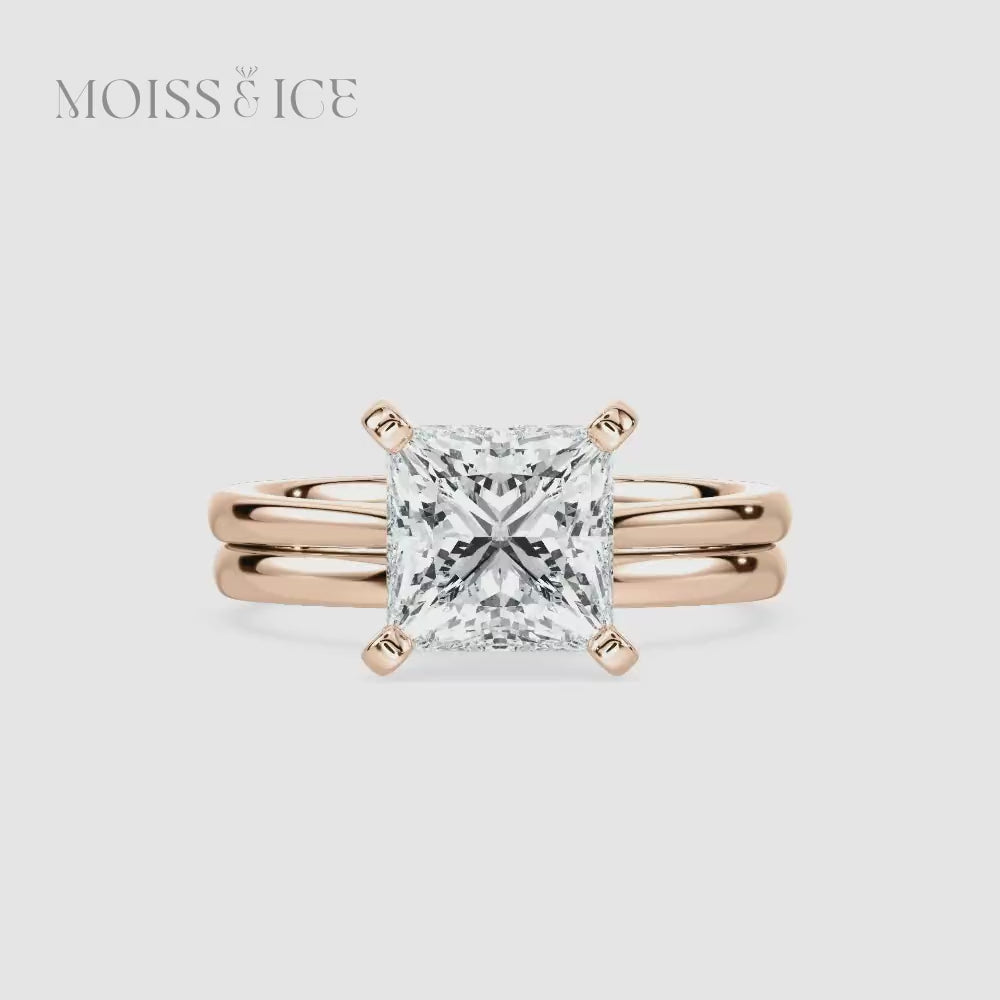 La Rajkumari | Ensemble de Bague de Fiançailles Solitaire en Moissanite Taille Princesse